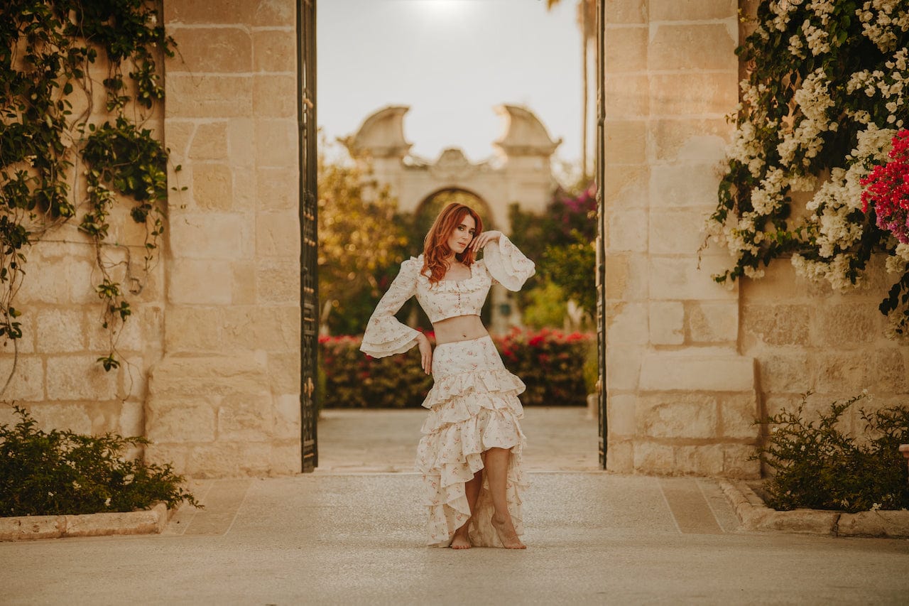 Rose ruffled crop top is made from 100% linen in the most dainty and romantic rose print. This unique pattern design was hand-painted using watercolour paints and then digitally printed using non-toxic, water-based pigments.